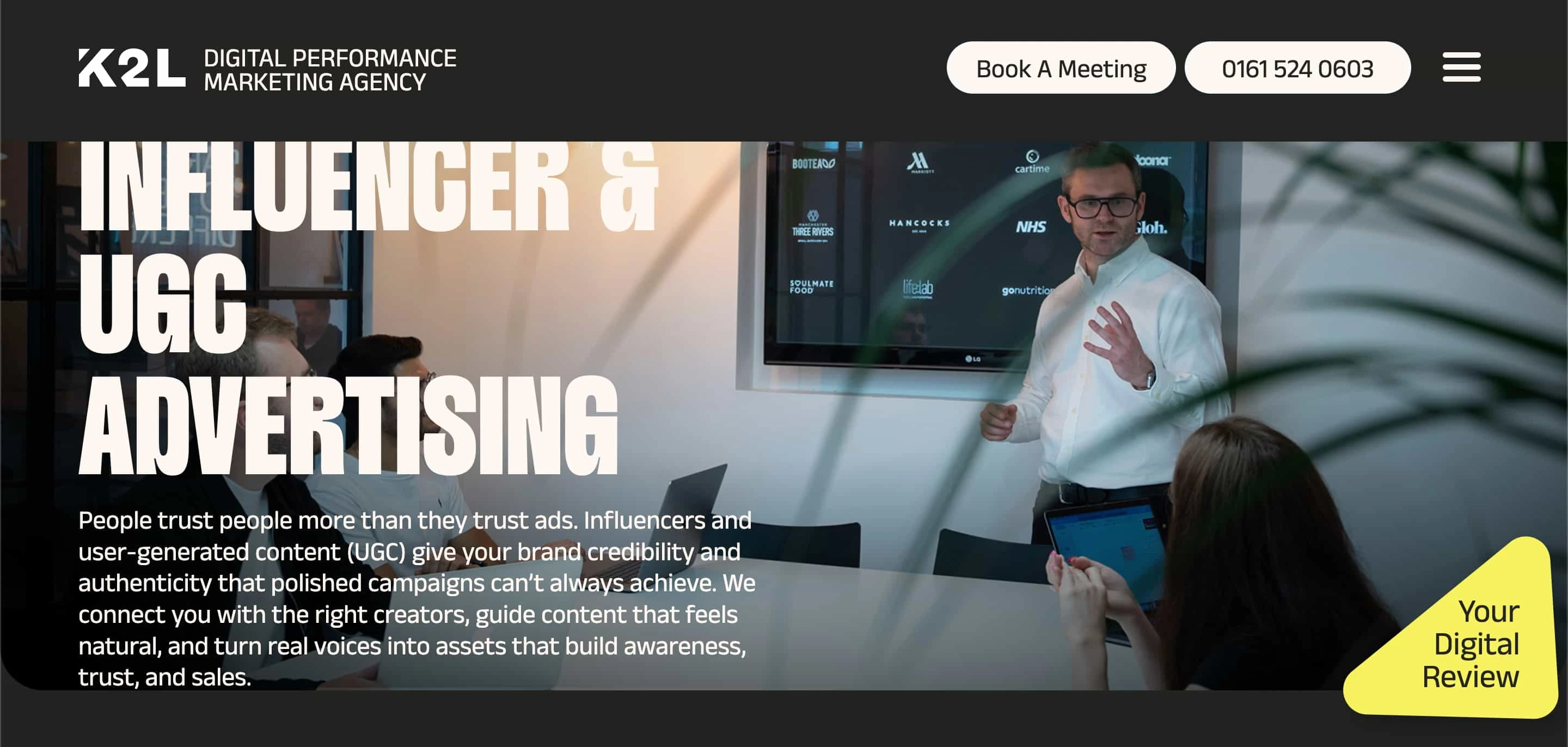 K2L is known for its integrated approach that blends influencer marketing with broader digital strategies like SEO and brand design. They prioritize the long-term health of a brand by treating marketing as a holistic ecosystem.