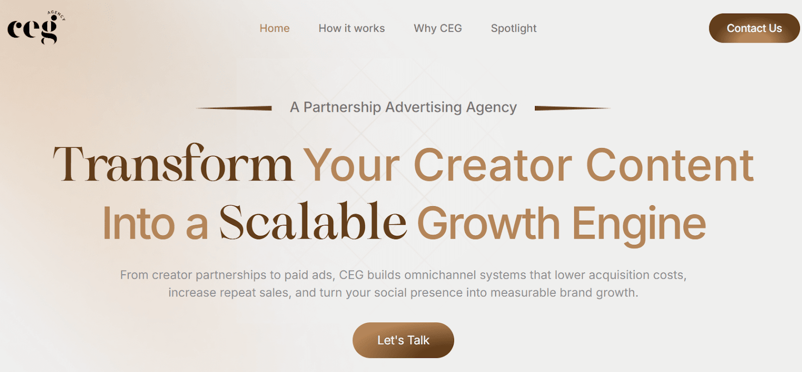 CEG specializes in transforming high-performing creator content into scalable ad assets across Meta, TikTok, and Google, helping brands move from one-off influencer activations to repeatable growth systems.