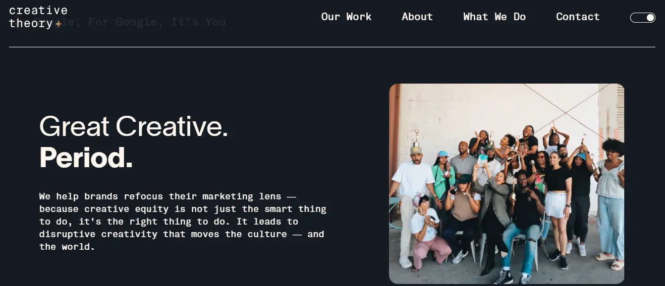 Creative Theory Agency differentiates itself by centering multicultural storytelling as a strategic foundation rather than a trend. The agency helps brands move from surface-level representation to authentic cultural relevance embedded into brand identity.