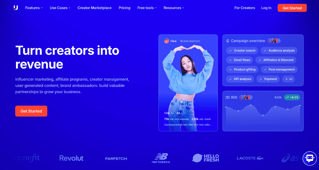 Upfluence is an influencer and affiliate marketing platform built with a strong focus on eCommerce brands. It combines influencer discovery, outreach, affiliate tracking, and payments in one system, with particular strength in turning existing customers into creators.