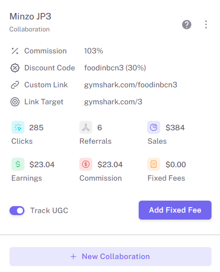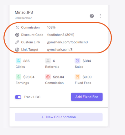 This data is synced directly to the creator’s deal page and visible inside the Collaboration section, allowing you to monitor storefront-driven performance without relying on external affiliate dashboards.