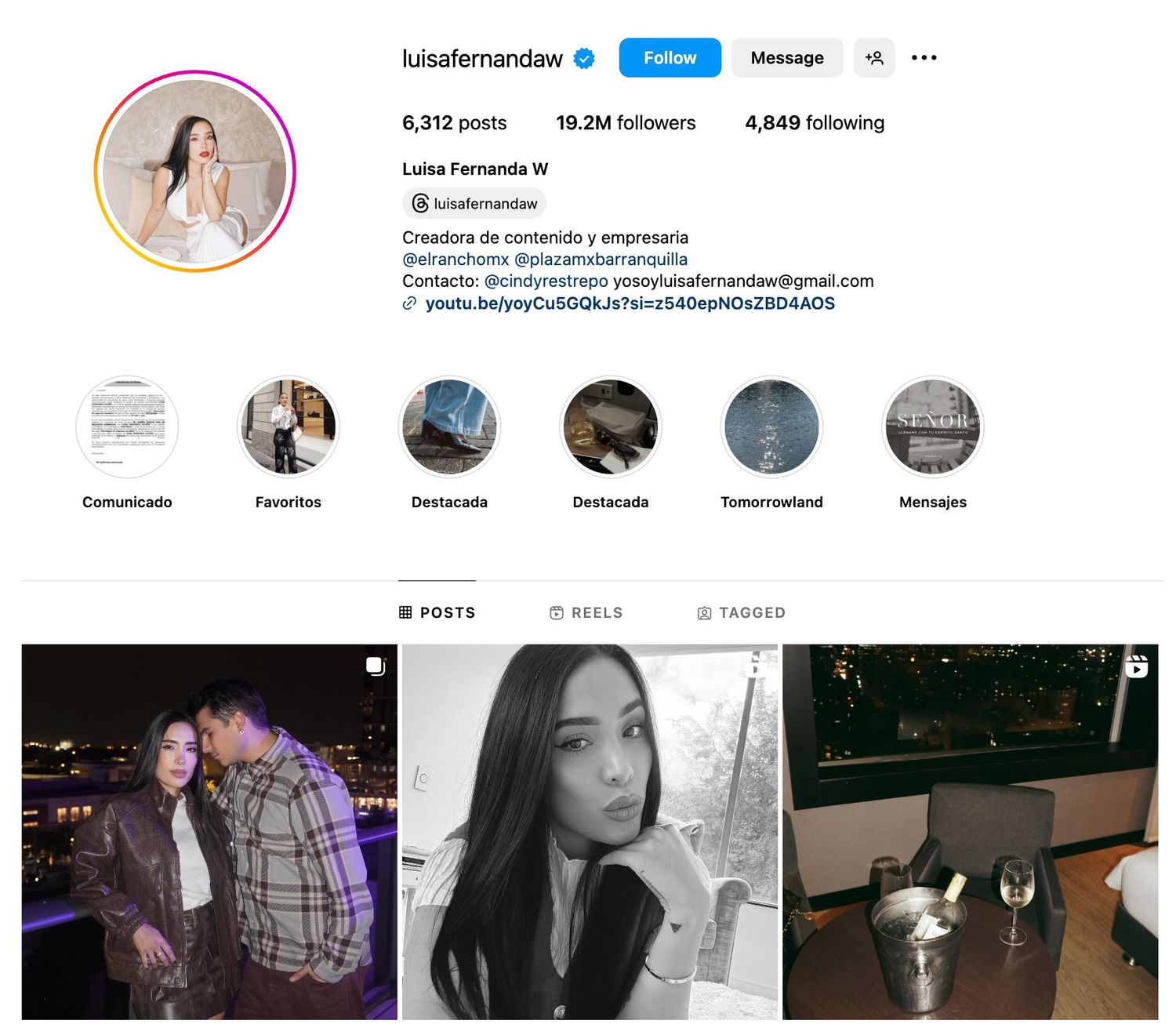 1. Luisafernandaw: Luisa Fernanda W, with 19.2 million followers, captivates her audience by sharing her passion for fashion, beauty, and lifestyle, making her one of Colombia’s most influential creators.