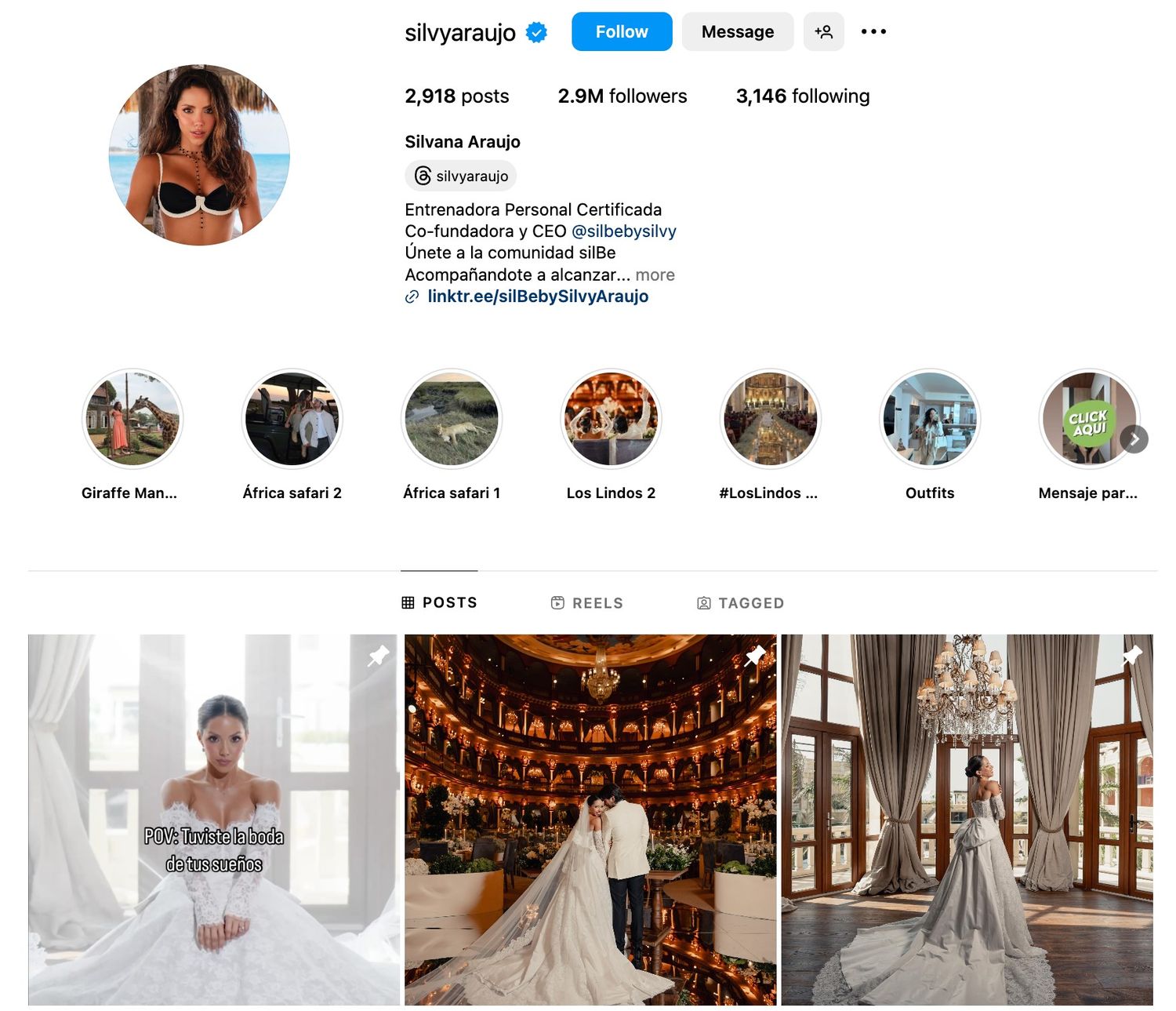 9. Silvyaraujo: Silvana Araujo is a Colombian influencer and certified personal trainer who shares her passion for fitness, lifestyle, fashion, and healthy living, inspiring her audience to lead a balanced and stylish life.