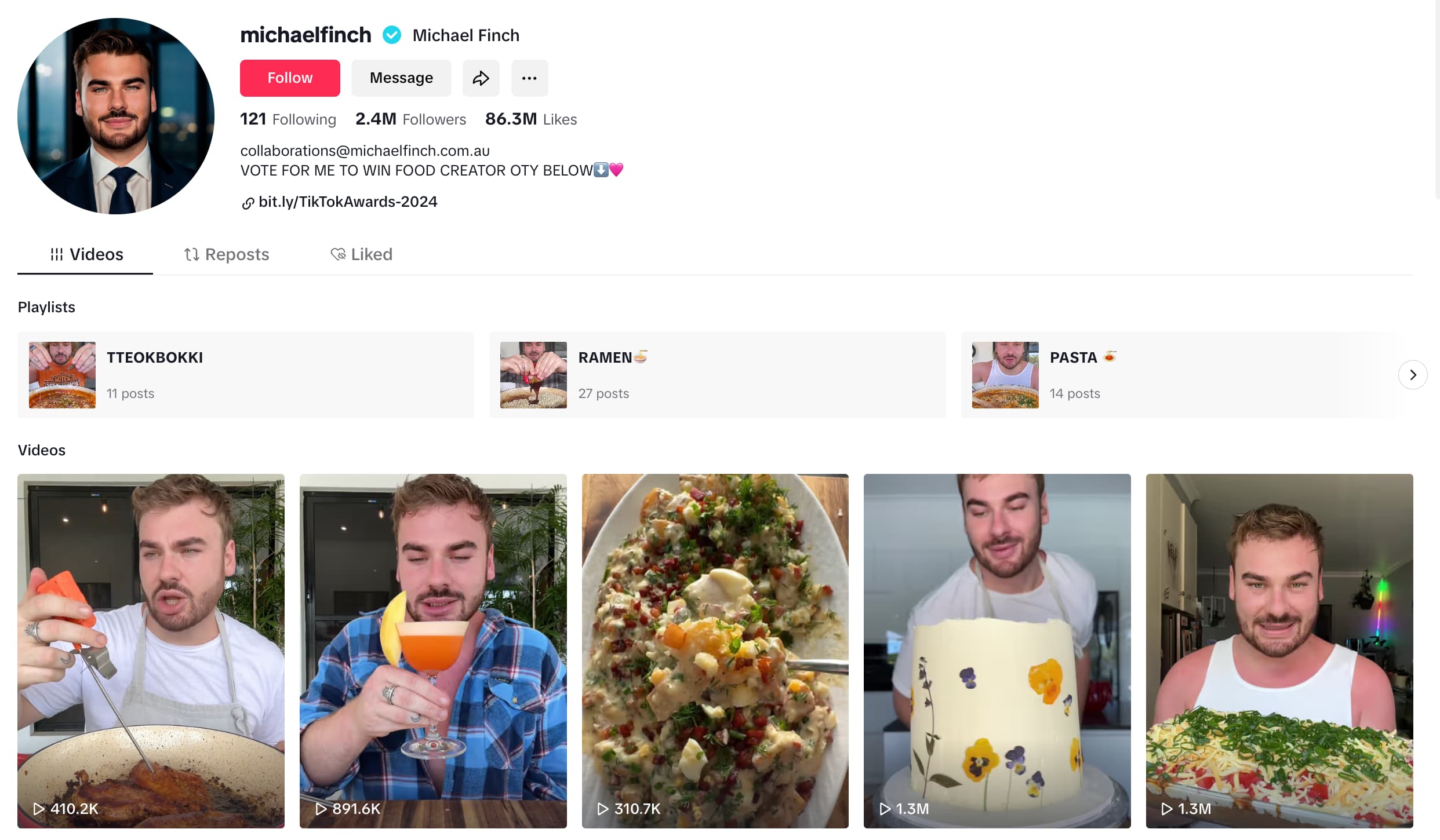 4. Michaelfinch: Michael Finch is an Australian TikTok influencer who delights his audience with creative cooking videos and delicious food recipes that inspire culinary adventures.