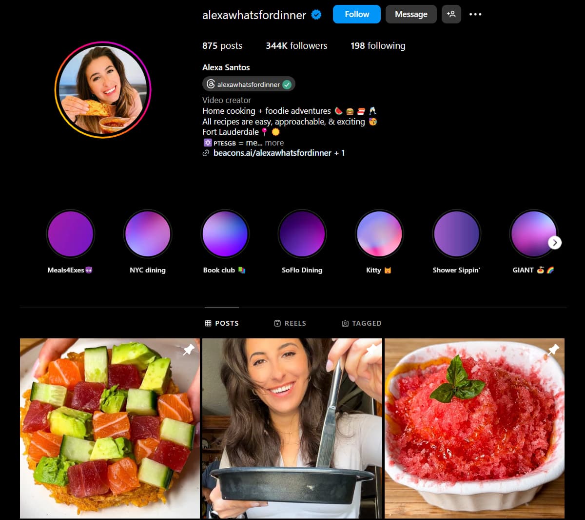 2. Alexawhatsfordinner: Alexa Santos, a video creator whose content is a delightful blend of home cooking and foodie adventures, offering easy, approachable, and exciting recipes.