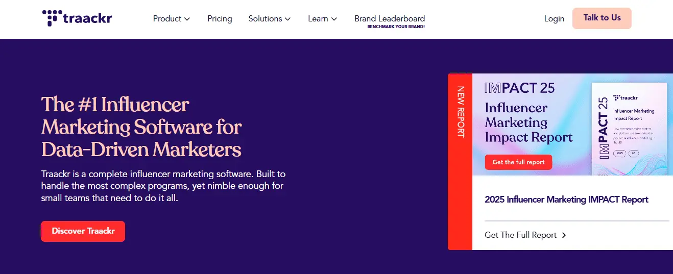 Traackr is an enterprise influencer marketing platform built for brands and agencies that manage influencer programs across multiple regions. Its main purpose is to deliver data-driven influencer discovery, campaign management, and ROI analysis.