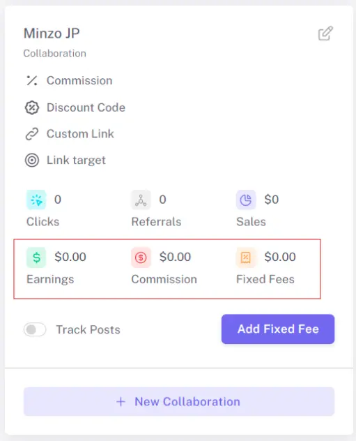 You don’t have to calculate these manually; the system automatically tracks earnings from conversion data and displays the total amount each creator has earned directly within the Collaboration Portal.