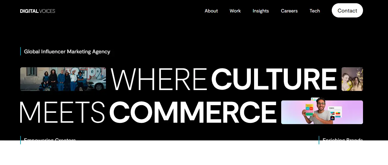 Digital Voices is known for combining influencer marketing with paid media and performance strategy. Digital Voices focuses on using creator content as scalable ad assets across paid channels. The agency places strong emphasis on attribution and performance measurement. It is a strong fit for brands looking to merge influencer marketing with paid social growth.