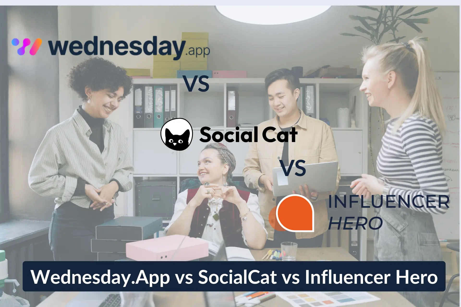 In this article, we’ll dive deep into the comparison between WednesdayApp, SocialCat, and Influencer Hero, exploring their features, pricing, pros, and cons to help you decide which platform aligns best with your brand’s goals.