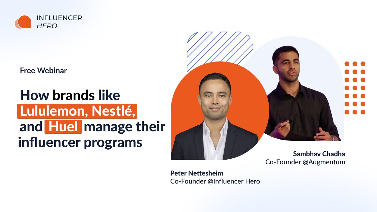 In this session, Peter Nettesheim, Co-Founder of Influencer Hero sits down with Sambhav Chadha, Co-Founder of Augmentum Media, to explore how leading brands like Lululemon, Nestlé, and Huel manage and scale their influencer programs to drive consistent, measurable ROI.